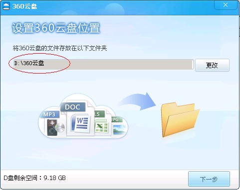 創建以后會告訴您云盤存放的位置,并為此創建一個目錄,如果您希望改成其他目錄,可以點更改,請不要將云盤目錄設置到系統盤C盤。 建議使用:d:\360云盤 這個目錄,后面介紹的程序也是以這個目錄為默認目錄的。