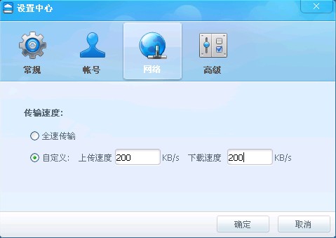 選擇“網絡”,將上行和下行速度都設置為200(在您本地電腦上可以不用設置此選項),以免備份流量太大影響網站的正常訪問。