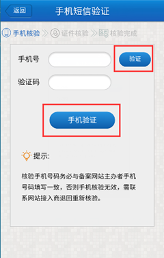 3.核驗手機號、身份證信息必須與備案系統填寫的網站負責人信息一致。