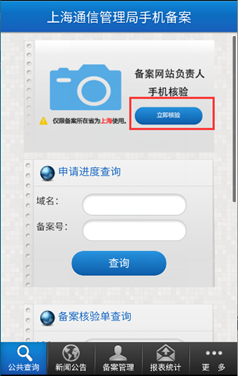 上海市通信管理局已啟用備案APP,可在線完成網站負責人核驗;使用范圍: