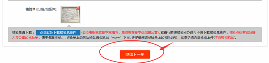 9.檢查備案圖片上傳完成后,點擊:繼續下一步 正式提交備案圖片;